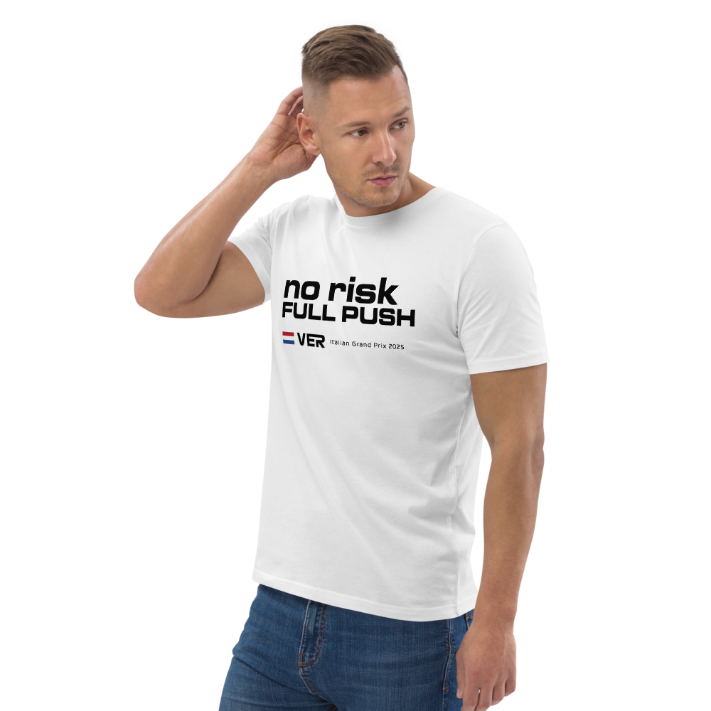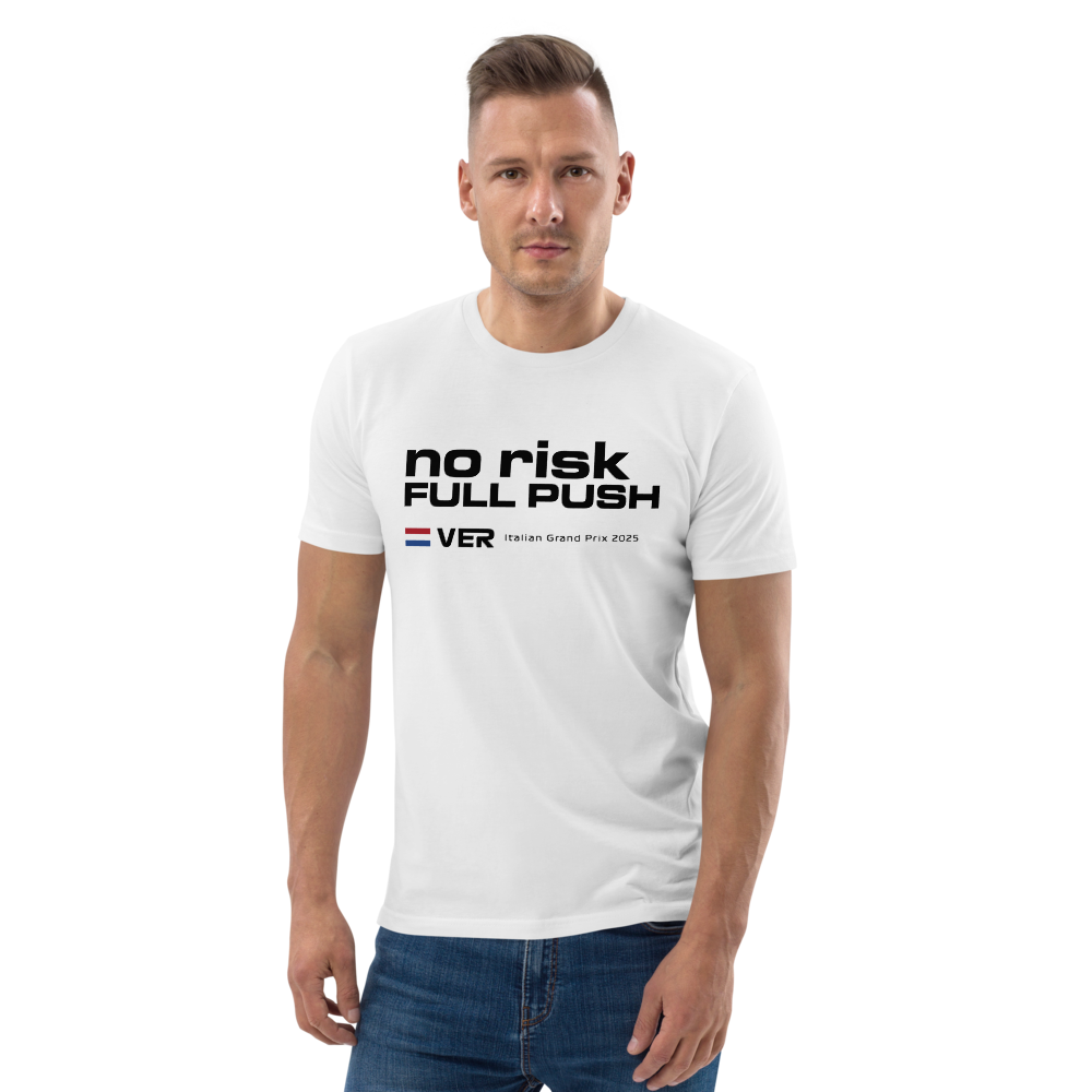 Max Verstappen No Risk Full Push T-shirt featuring Max Verstappen's incredible team radio at the 2025 Formula 1 Italian Grand Prix. Made from 100% organic ring-spun cotton, this t-shirt is a...