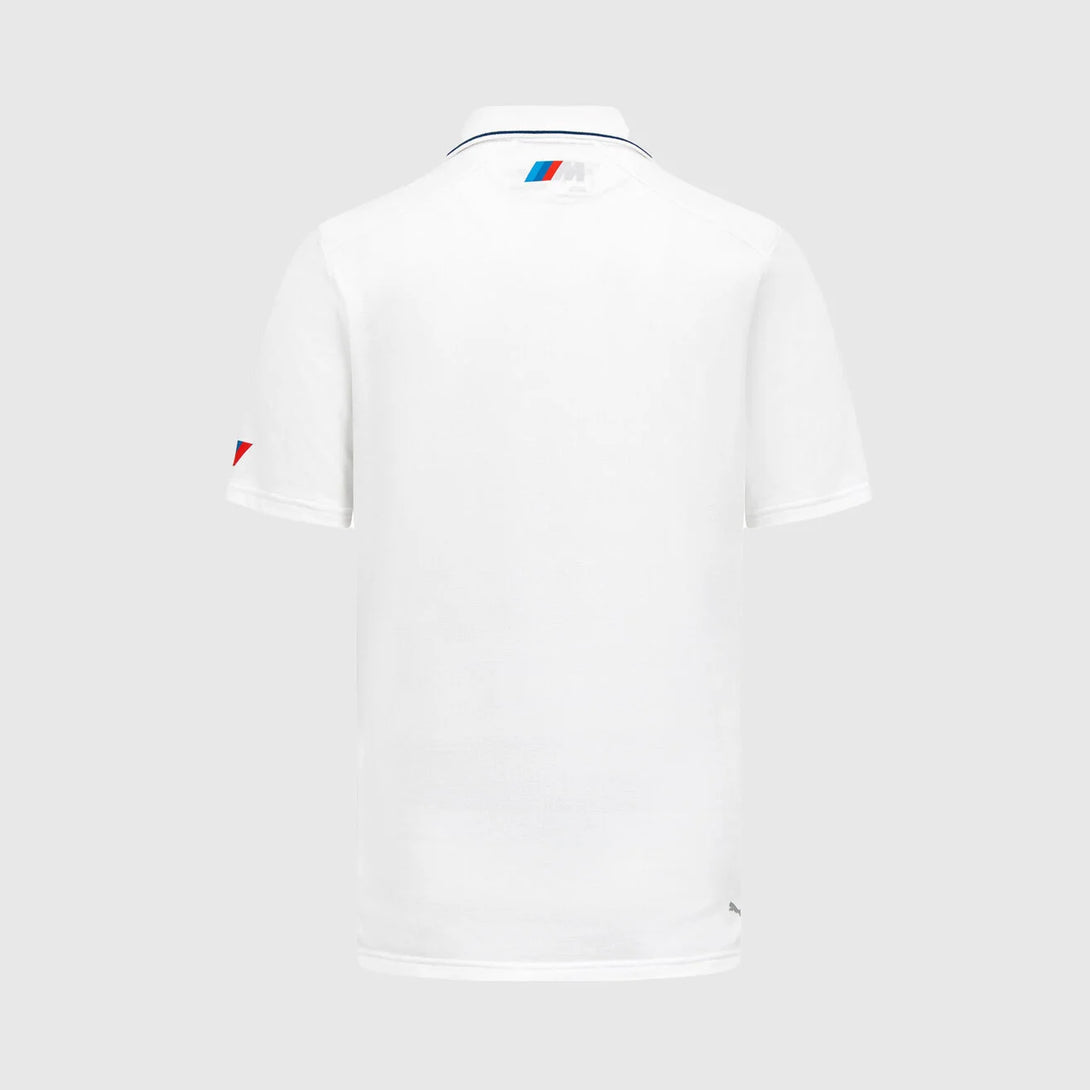 Polo BMW Motorsport Team Branco. Artigo de merchandising oficial da BMW Motorsport, a divisão da BMW dedicada aos desportos motorizados.